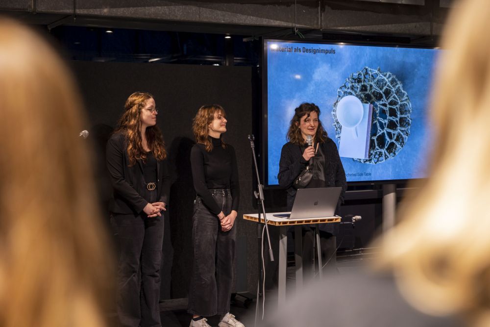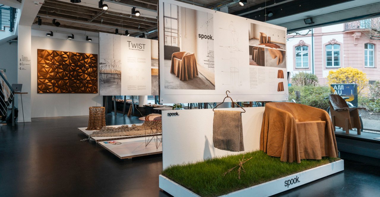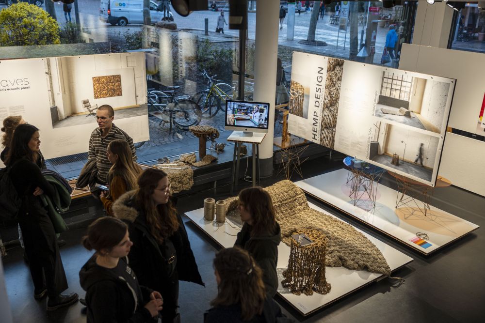 Im März 2023 wurde im LUX, dem innerstädtischen Schaufenster der Hochschule, das Semesterprojekt MATERIAL ALS DESIGN IMPULS im Rahmen einer Ausstellung präsentiert. Gezeigt wurden dabei nicht nur die fertigen Ergebnisse des Kooperationsprojekts mit den niederländischen Unternehmen Vepa und Plantics, sondern auch ein Vielzahl experimenteller Materialversuche, welche eine forschende Auseinandersetzung mit den Ausgangsmaterialien Hanf und Bioharz und den intensiven Entstehungsprozess der Prototypen dokumentierten.
