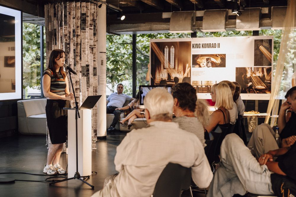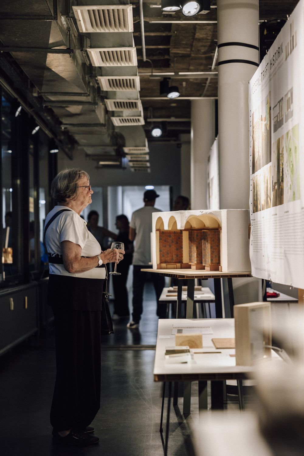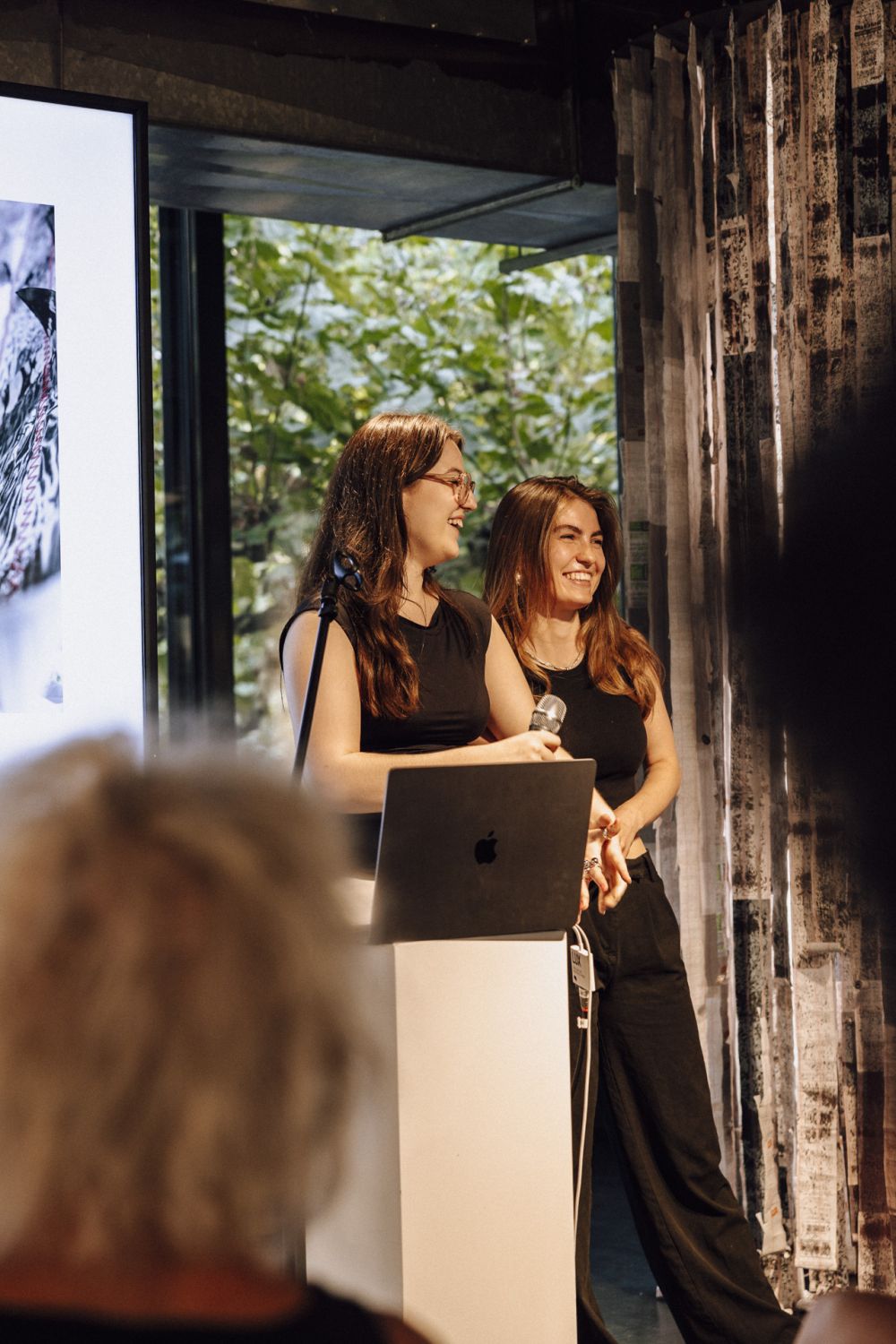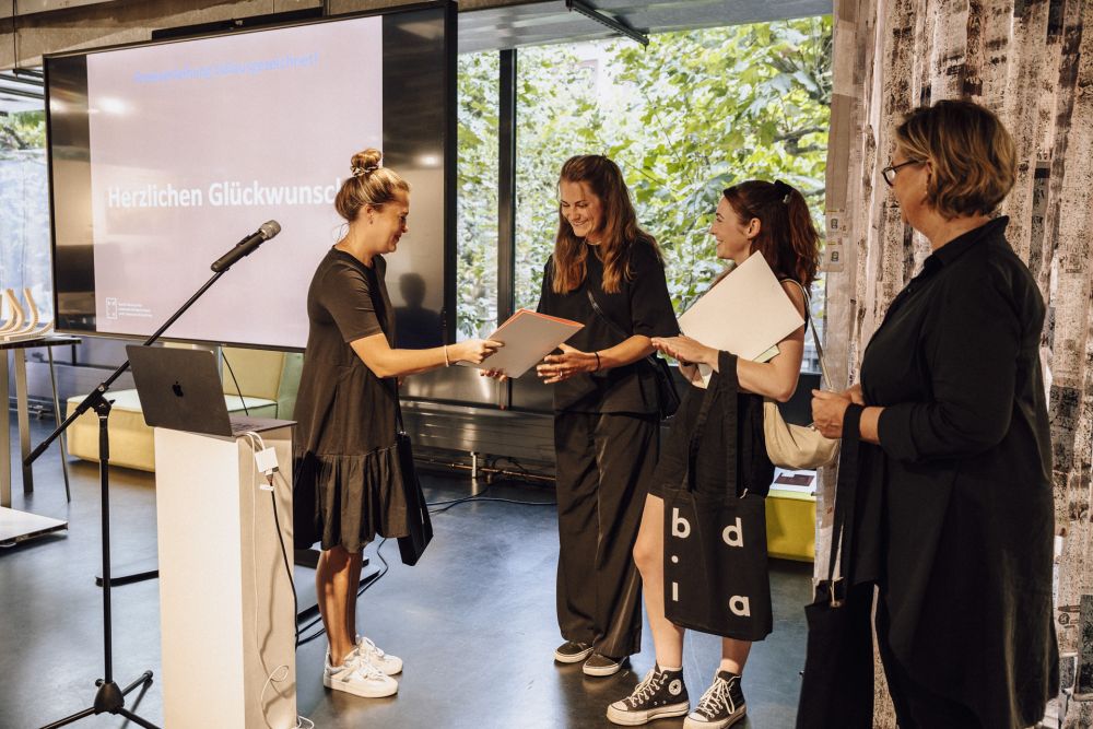 Katharina Kasinger leitete gemeinsam mit Prof. Anja Soeder an diesem Abend wieder in die Vernissage ein. Darauf folgten studentische Projekt-Präsentationen der ausgestellten Entwürfe, die Verleihung der Auszeichnung und Anerkennung des bdia (Bund deutscher Innenarchitekt:innen), sowie die Verleihung des Meerweinpreises 2023.