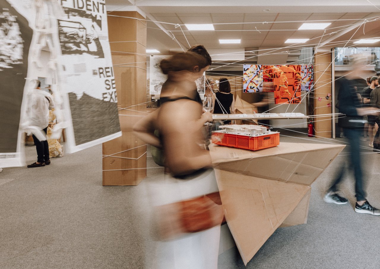 Für BEST OF GESTALTUNG hatten interdisziplinäre Studierendenteams aus den Fachrichtungen Innenarchitektur und Kommunikationsdesign ein medien und ortsspezifisches Ausstellungskonzept für die vorab von den Professor:innen der Fachrichtungen jurierten, repräsentativen Arbeiten aus den jeweiligen Lehrgebieten konzipiert und realisiert. Die Ausstellungseröffnung wurde zum fröhlichen Sommerfest mit viel Design, Kunst, Gestaltung und guten Gesprächen bei kühlen Getränken.
