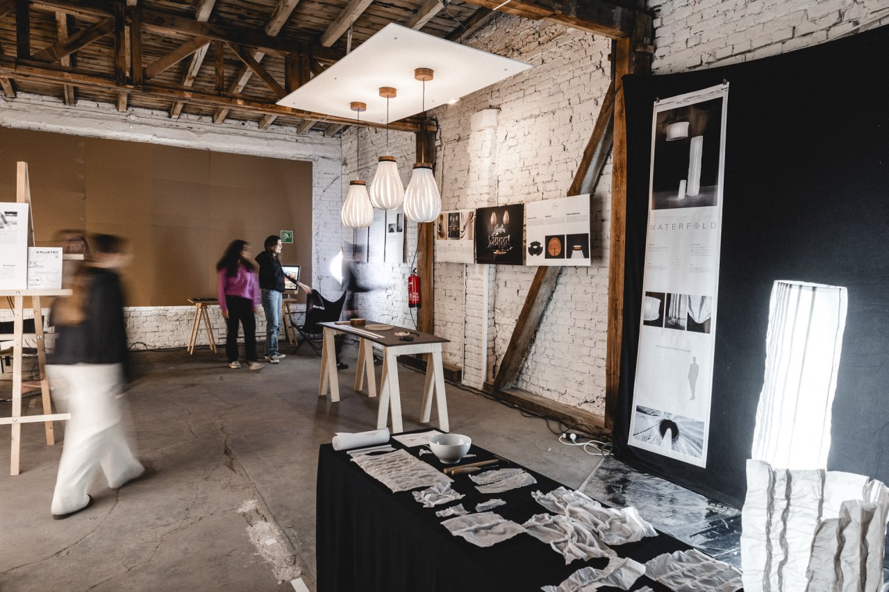 Das Thema des Produktentwurfs unseres 1. Semesters war "Paperlight" - Leuchten mit Schwerpunkt Papier. Die Ergebnisse aller Studierenden wurden in einer finalen Ausstellung mitten in der Mainzer Neustadt für alle öffentlich präsentiert. Alles an vorangegangen Form- und Funktionsstudien bis hin zum eigenen Designentwurf wurde dort ausgestellt - anfassen erlaubt.