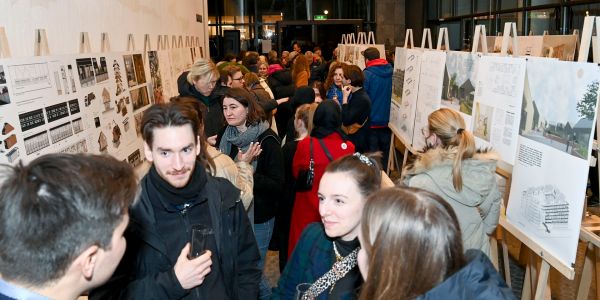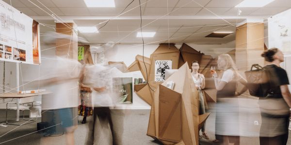 Innenarchitektur mit Außenwirkung: Der hochschuleigene Ausstellungspavillon LUX bildet eine transparente Schnittstelle zwischen Fakultät und Stadt. Im zentral gelegenen Showroom am Schillerplatz präsentieren sich alle drei Fachbereiche dem öffentlichen Publikum. Zwei vollverglaste Geschossebenen werden kontinuierlich mit Werkschauen, Symposien und Workshops bespielt. Darüber hinaus stellen unsere Innenarchitektur-Studierenden regelmäßig an anderen Veranstaltungsorten in Mainz aus, wie im Staatstheater oder im Zentrum für Baukultur.