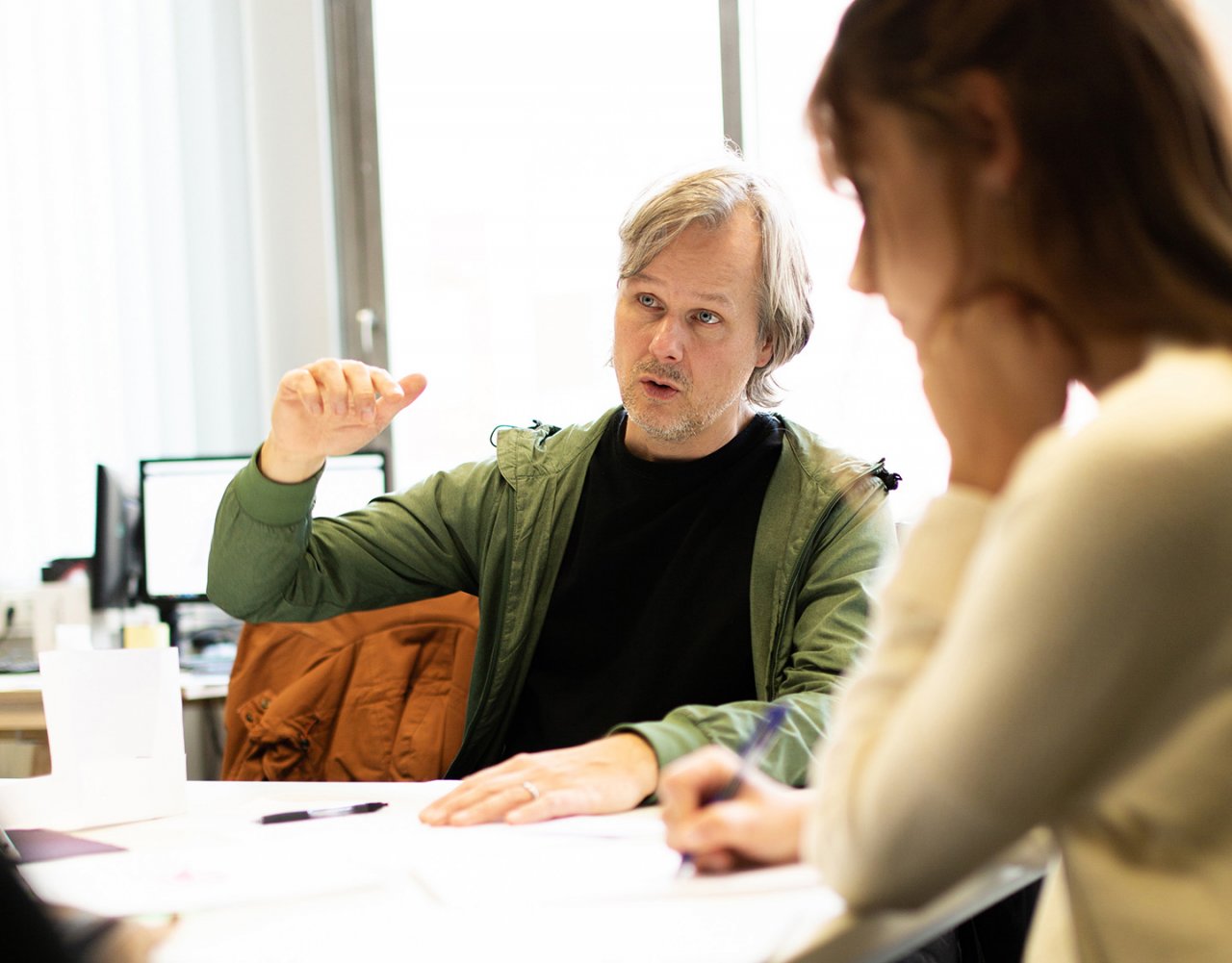 Prof. Wolf Gutjahr unterrichtet Szenografie, Szenischer Raum und Gestaltungsgrundlagen. Aufgewachsen in München, assistierte er am Schauspielhaus Bochum, der Oper Frankfurt und der Toneelgroep Amsterdam und studierte Szenografie (Diplom) an der Staatlichen Hochschule für Gestaltung Karlsruhe. Er ist seit 1995 international als Szenograph, sowie Bühnen- und Kostümbildner für Musiktheater und Schauspiel tätig.