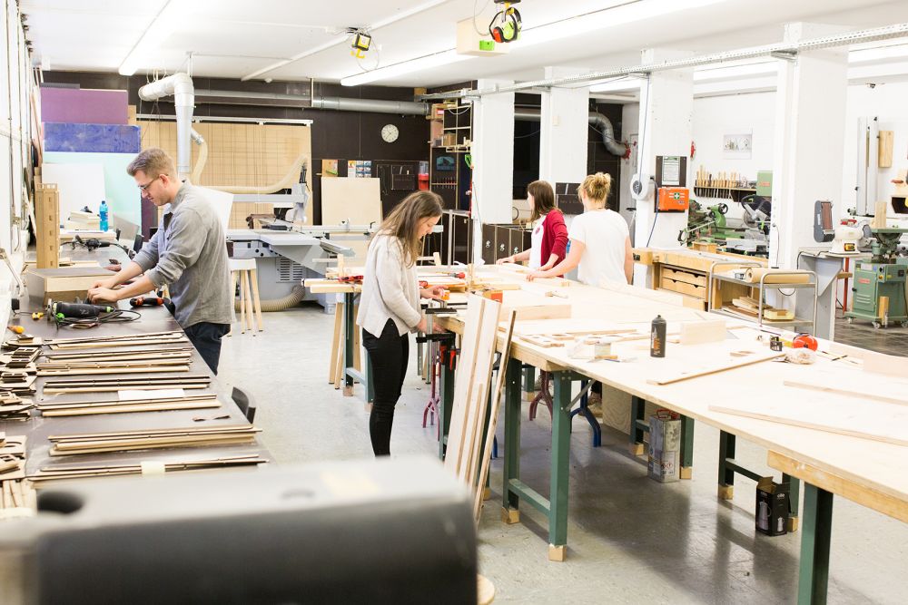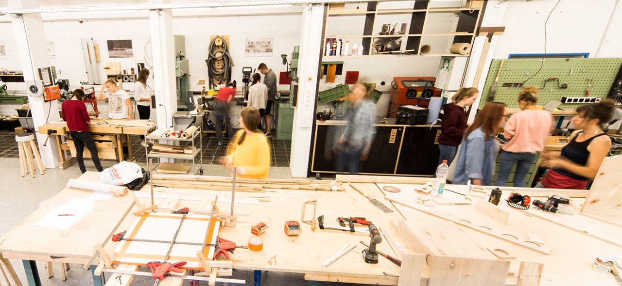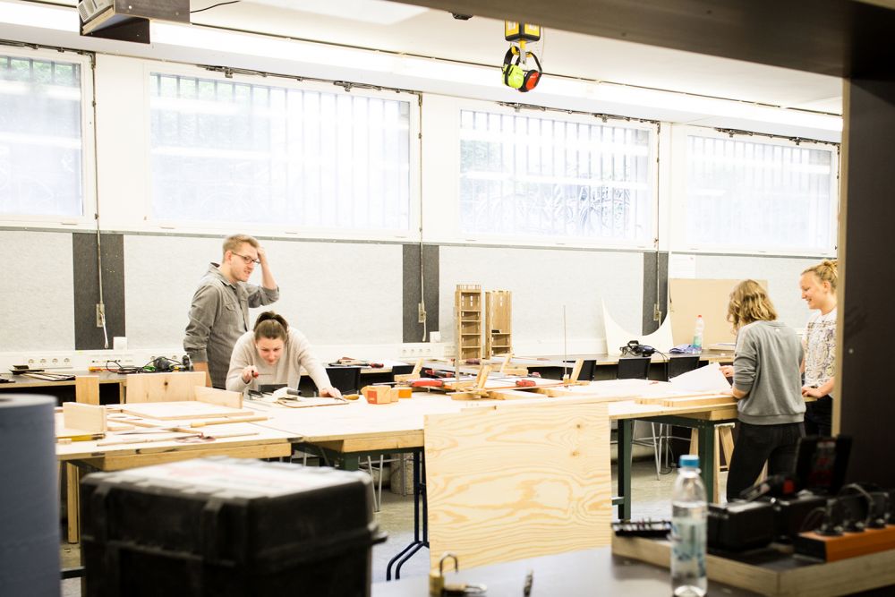 Die fachrichtungseigene Modellbauwerkstatt ermöglicht die Umsetzung von Maßstabsmodellen und Prototypen in einer Vielzahl von Werkstoffen und Herstellungsverfahren. Unterstützt von unseren Modellbauern und Schreinern bauen hier Innenarchitektur-Studierende aller Semester Entwurfs-, Test- und Präsentationsmodelle oder führen Materialexperimente durch. Nach Erwerb des Maschinenscheins und Einweisung in die computergesteuerten Anlagen darf in dieser Werkstatt auch außerhalb der regulären Öffnungszeiten eigenverantwortlich gearbeitet werden.