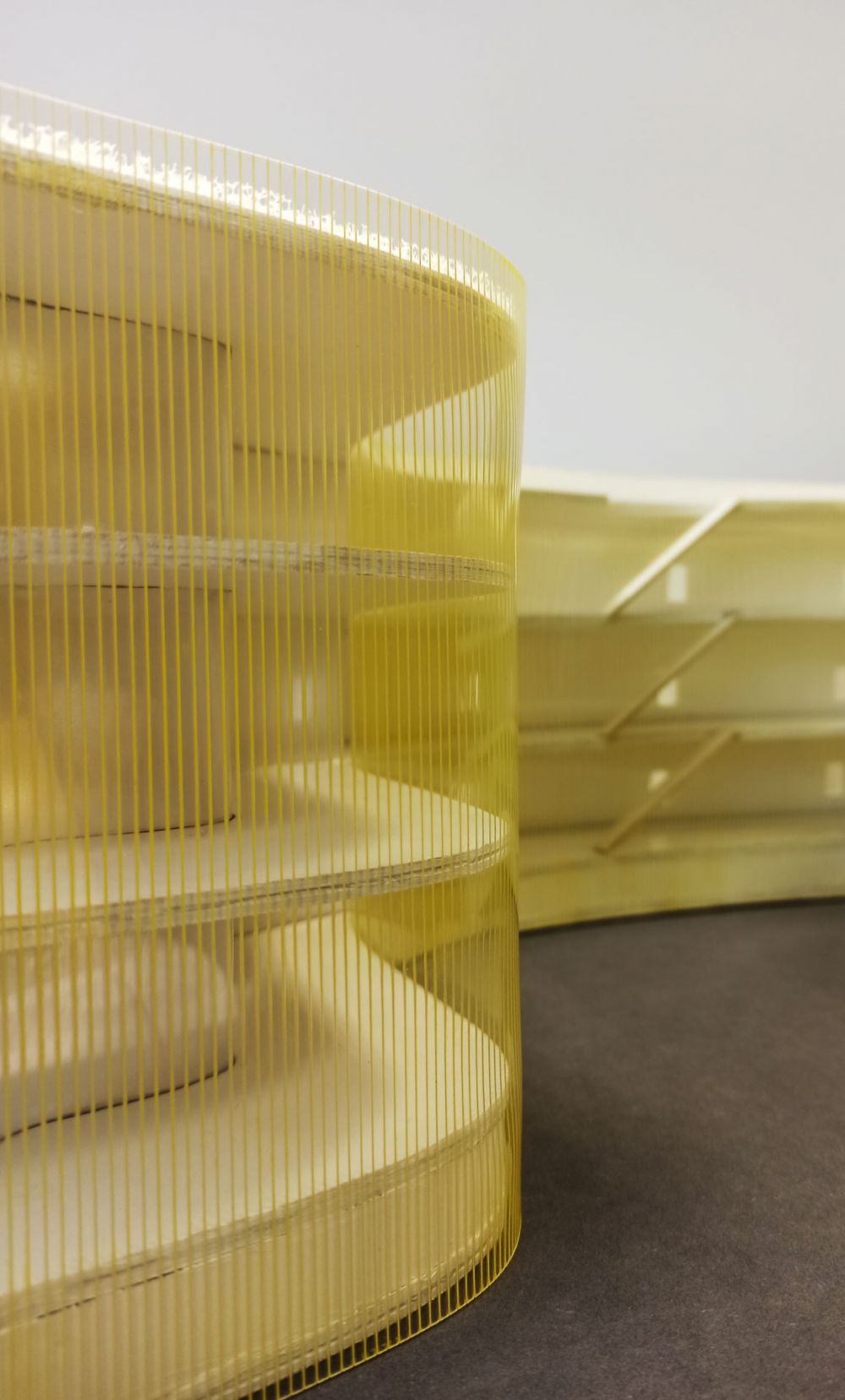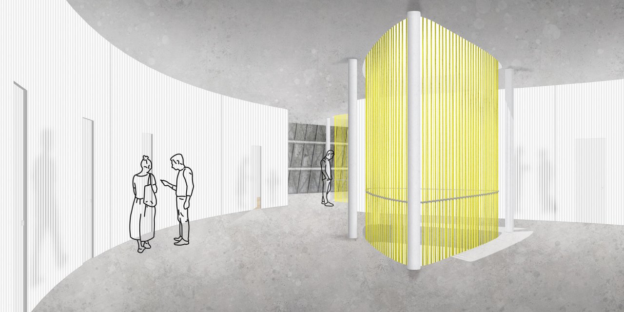 Die Seile des lichtdurchfluteten Zentrums in der vertikalen Mitte des Turms dienen zur Absturzsicherung und geben den Sichtbezug nach oben und unten frei. Diese neue Art der Siedlung schafft ein Lebensgefühl in der Höhe. Sie erhält die Sichtbezüge zur Nachbarschaft und bietet gleichzeitig halbgeschützte Räume, die Hausflurmomente ermöglichen und zur Kommunikation einladen.