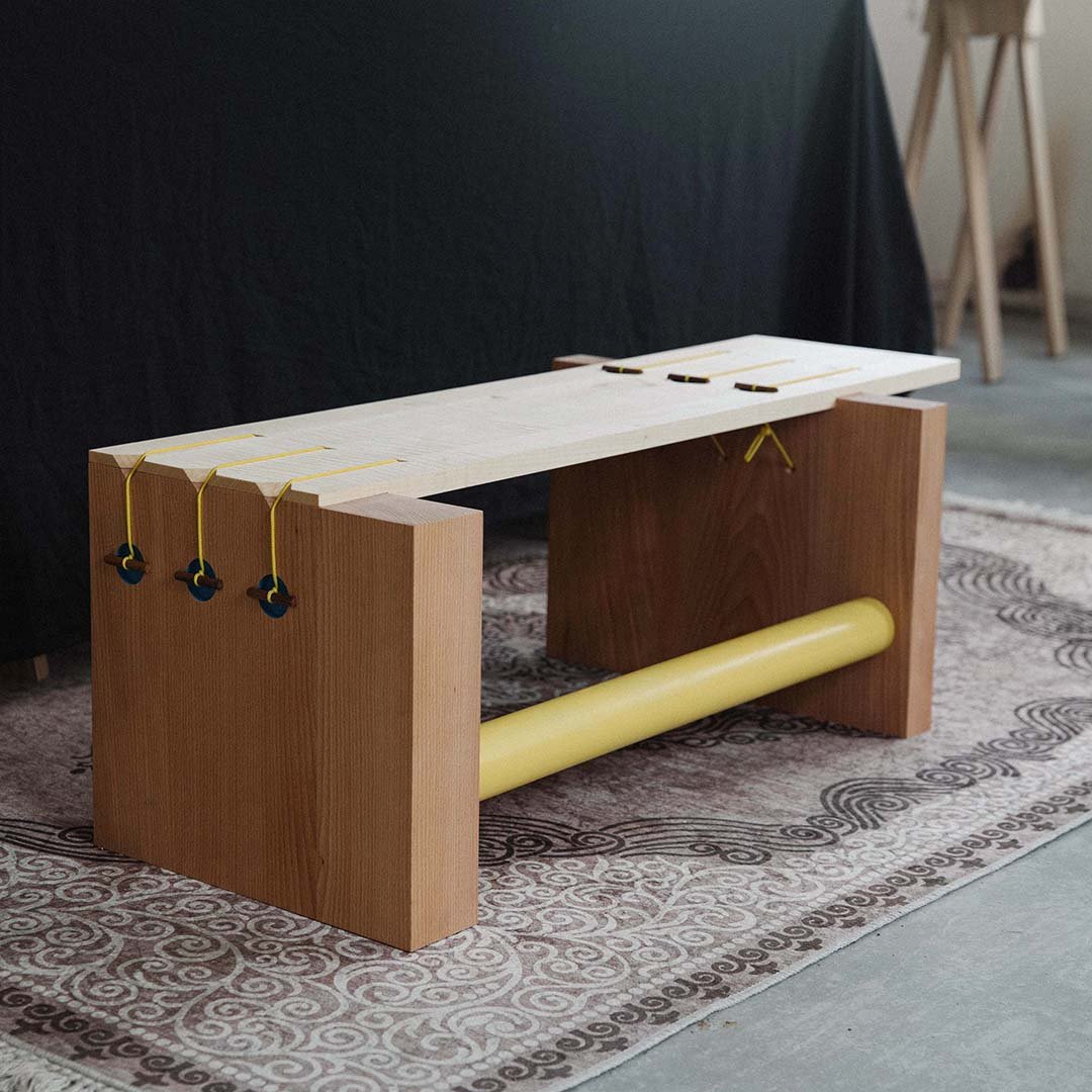 NOA ist die Zusammenführung einer Proportionsstudie des »Ulmer Hockers« und eines Verbindungsexperimentes. Über Drehung eines Stabes wird ein Seil unter Spannung gesetzt und verbindet zwei Elemente reversible und ohne Klebstoff. NOA greift diese Konzepte auf und löst die Details der Möbel mit Rechtecken, Kreisen und Dreiecken. Die Farbgebung ist eine Kombination der Grundfarben Gelb und Blau. NOA ist entstanden aus Experimenten und verbindet klassische Gestaltungsphilosophien mit einer schlichten und effektiven Verbindung zu einer mutigen und neuartigen Möbelfamilie der heutigen Zeit.