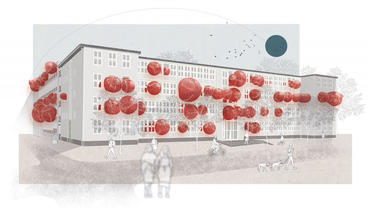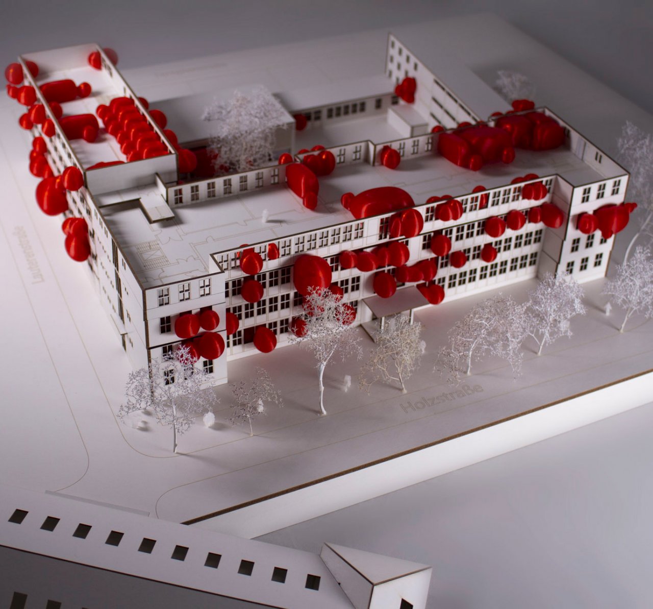 »Histories Embodiment« gibt der Geschichte der Hochschule einen Körper und zeigt ihren Willen, endlich auszubrechen. Denn die Vergangenheit der Hochschule Mainz und vor allem die der Jahre 1933-45 wurden lange Zeit gar nicht beachtet oder erwähnt; sie wurden verschwiegen. Das Projekt verkörpert den Impuls, endlich aus diesen Mauern der »Geheimhaltung« auszubrechen. Dies wird szenografisch durch rote aufblasbare Membranen