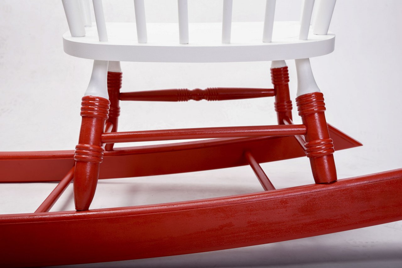 Der „LEFTRIGHT SWING“ schafft eine Verbindung zwischen neu und alt. Die Schaukelstühle sind Second Hand Möbelstücke, die mit den neuen Kufen aus Multiplex Platten verleimt wurden. Für zusätzliche Stabilität wurden die Kufen durch passgenaue Stahlplatten verstärkt. Die Farbgestaltung macht das Möbelstück zu einem Hingucker, der alt und neu klar kennzeichnet.