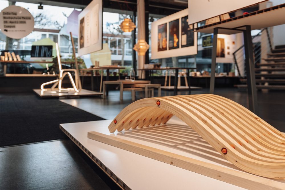 Zu Beginn des Sommersemesters 2024 präsentierten die Studierenden des ersten Bachelorsemesters die Ergebnisse ihres Möbelprojekts LATTE DELUXE im innerstädtischen Ausstellungspavillon LUX. Zu sehen waren nicht nur die zuvor entworfenen und realisierten Prototypen aus veredelten Dachlatten, sondern auch eine Vielzahl spannender Materialexperimente, die den Entstehungsprozess der einzelnen Objekte dokumentierten.
