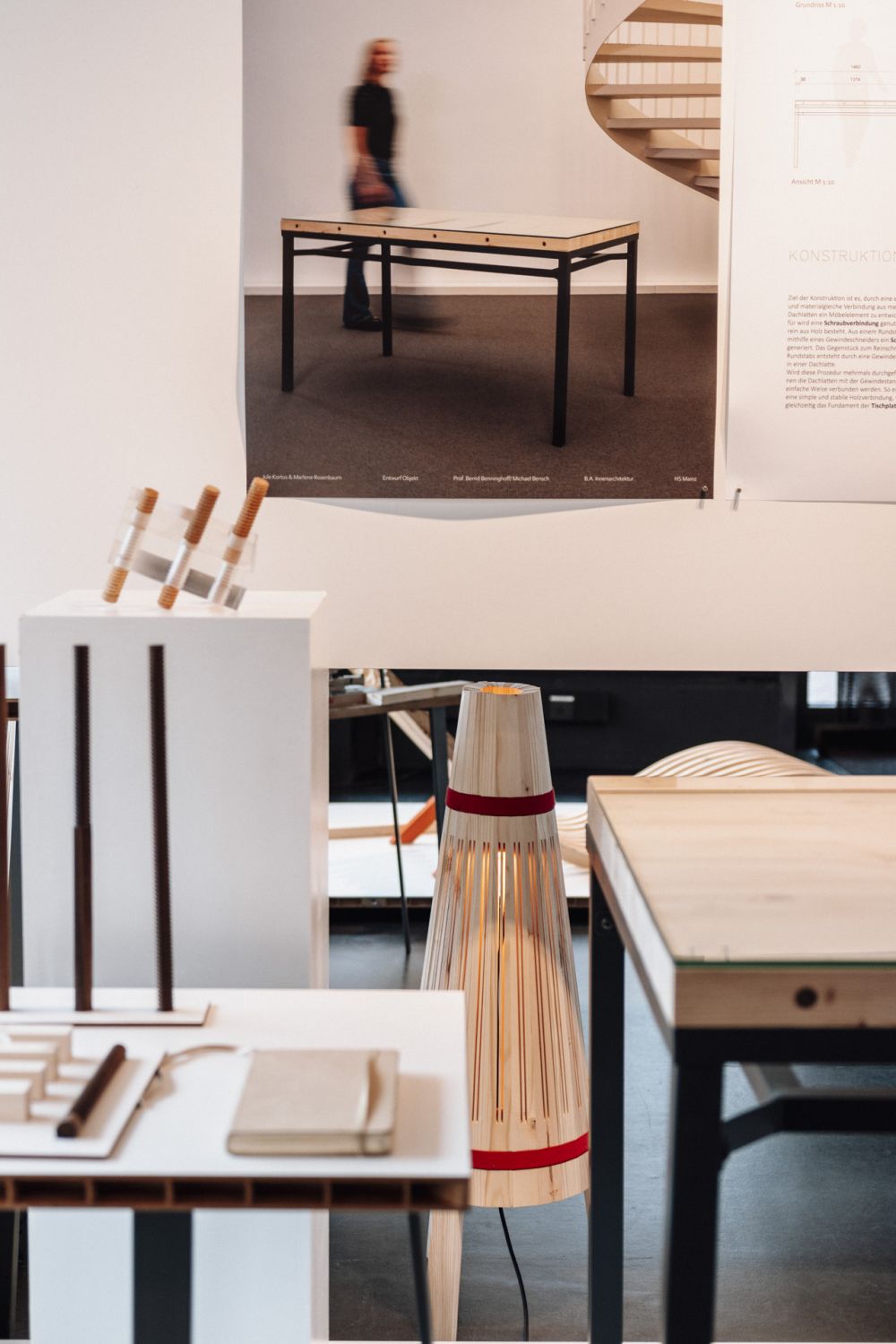 Ziel des Projekts war, das Potential der groben Dachlatte zu erforschen, das Rohmaterial zu veredeln, maximal mit einem weiteren Material zu kombinieren und daraus hochwertige Möbel, Leuchten oder Raumelemente zu gestalten. Inspiriert durch umfangreiche Materialexperimente realisierten die Studierenden eine Vielzahl unterschiedlicher Produktideen in Form funktionsfähiger Prototypen.