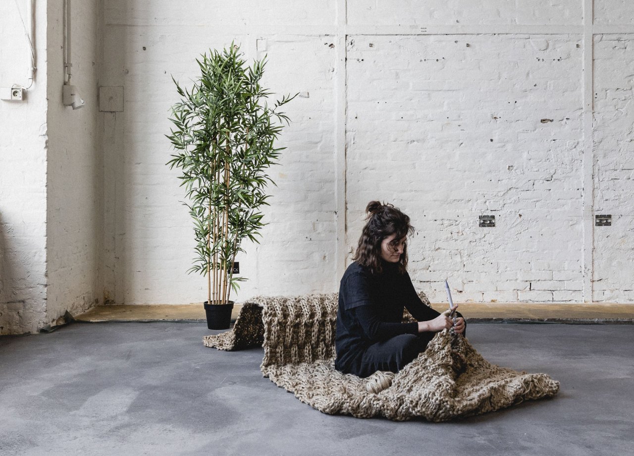 inspirierend und hat dazu geführt, umweltfreundliche Gestaltungsansätze in die unterschiedlichen Entwürfe zu integrieren. Das Ergebnis sind in Einzelteile zerlegbare und kompostierbare Möbelstücke wie ein modularer Raumteiler aus radial gepressten Hanfmatten ein Sitzmöbel aus geflochtenen Hanffasern oder ein Tischsystem, dessen filigranes Untergestell aus gedrehten Fasern gefertigt wurden.